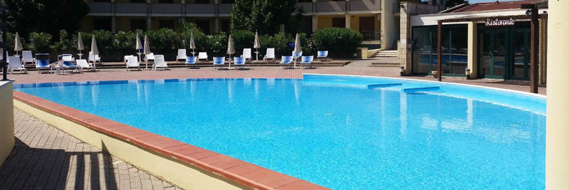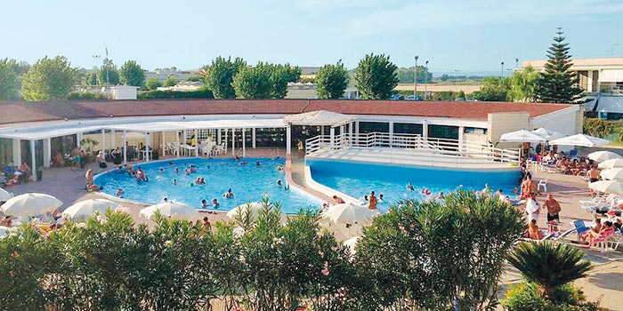 La piscina, di forma circolare, ha una zona riservata ai bambini. È attrezzata con ombrelloni, lettini e zona bar.