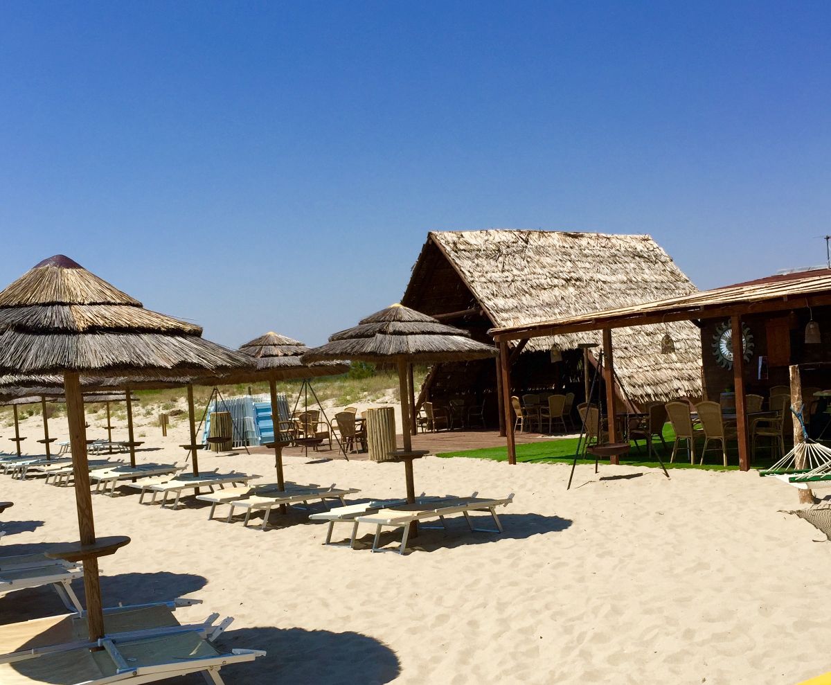 La spiaggia di sabbia fine e mare digradante, a circa 900mt dalla struttura, è ad uso esclusivo degli ospiti. Attrezzata con ombrelloni, sdraio e lettini, bar e docce, si raggiunge utilizzando il servizio di navetta continua, oppure attraverso una piacevole passeggiata a piedi attraverso la pineta.